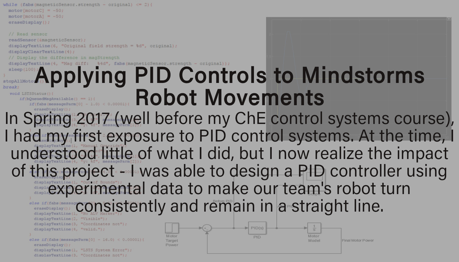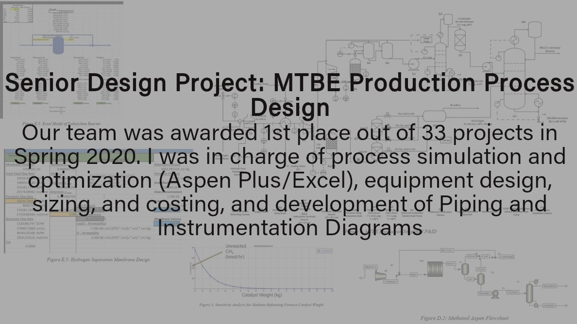 Below are a handful of my most impactful experiences and design projects from college. Hovering over each image will give you an idea of what the project entailed and why it is important to me. Clicking on some tiles will give more information about that experience in the form of a detailed PDF summary of my contributions and learnings from the project, a YouTube presentation, or a link to the dynamic, HTML form of my resumé. Feel free to take a look around and reach out with any questions!